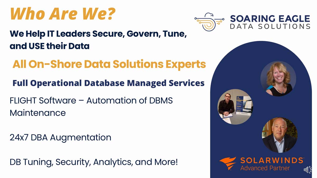 Soaring Eagle Data Solutions provides Database Managed Services to organizations ranging from startups to Full Enterprise!
